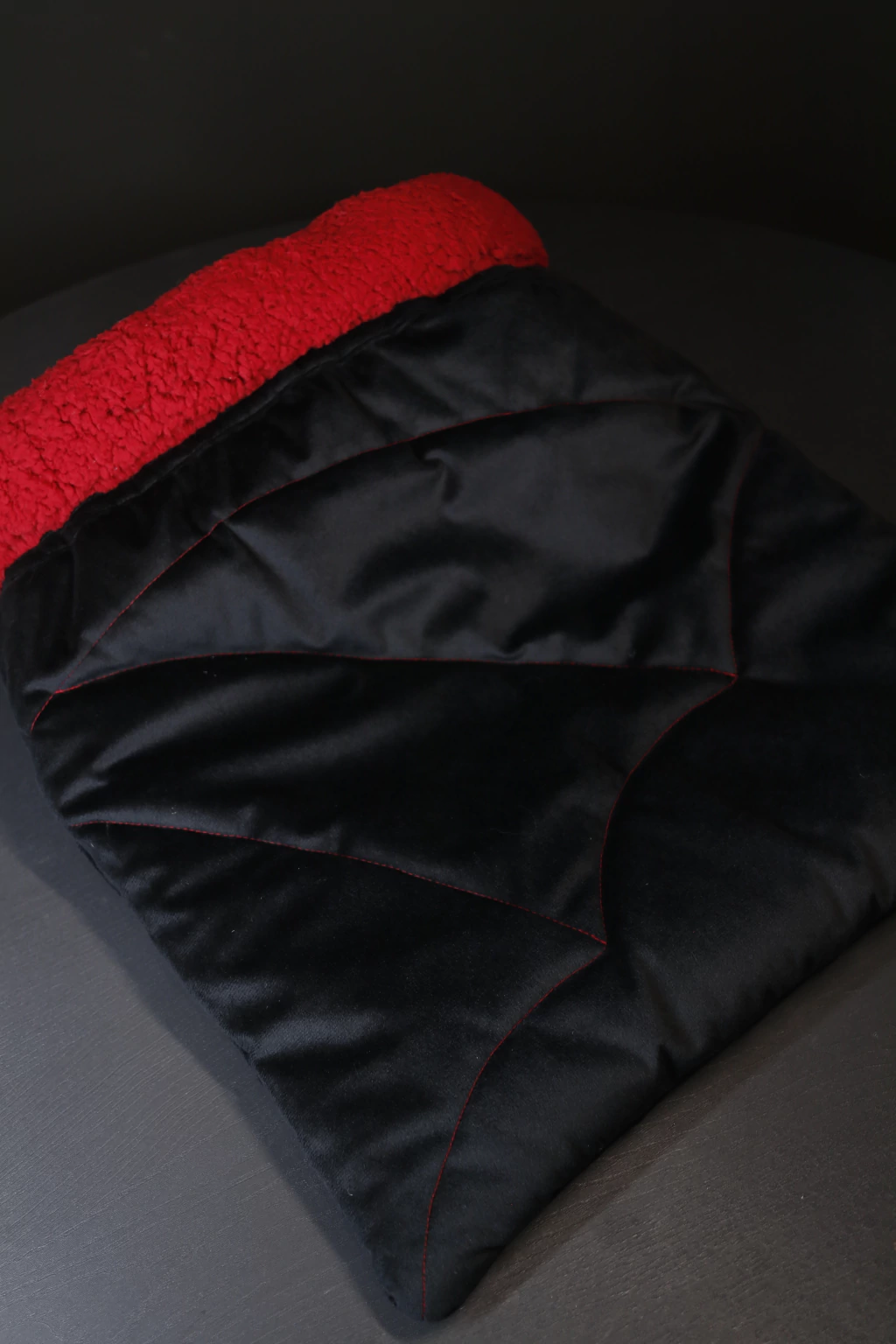 Parece um saco de dormir, mas é muito mais, é uma Toca Purr foooooooooofa com costuras de Asa de Morcego.